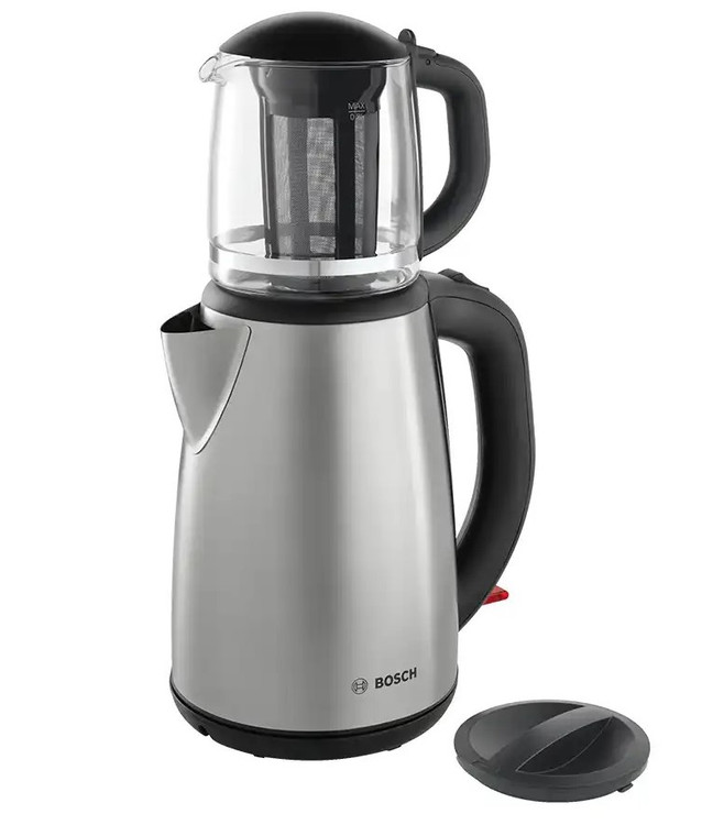 چای ساز بوش مدل 5603 یکی ازمحصولات شرکت معتبر بوش میباشد که دارای کتری تمام استیل به گنجایش1.7 لیتر و پایه 360 درجه میباشد و همچنین قوری پیرکس به گنجایش 0.8 میباشد