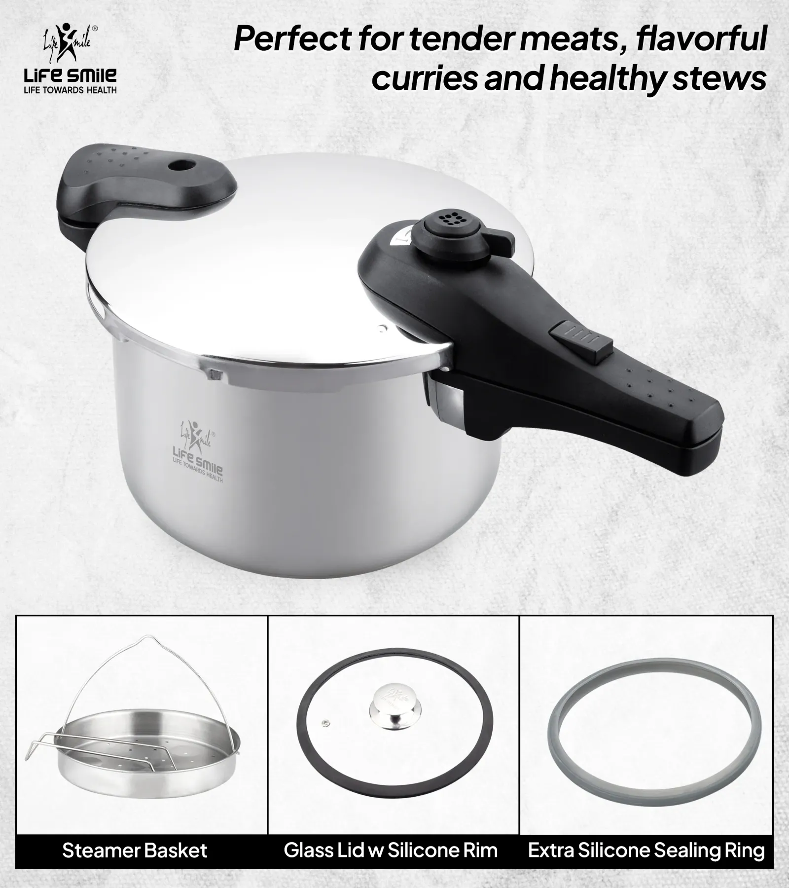 دپز لایف اسمایل مدل LIFEPRE یک محصول ایدهآل برای کسانی است که زندگی پرمشغلهای دارند. این زودپز انواع سوپ، خورشت، سبزیجات، مرغ و ماهی را در حدود سه تا ده برابر سریعتر از روشهای معمولی برای شما آماده خواهد کرد. بدنه زودپز LIFE SMILE از استیل ضد زنگ نوع 304 با روکش گرانیتی تولید شده که به راحتی قابل شستشو میباشد. ظرفیت این مدل 4لیتر بوده و دارای سایز 22 سانتیمتری است.