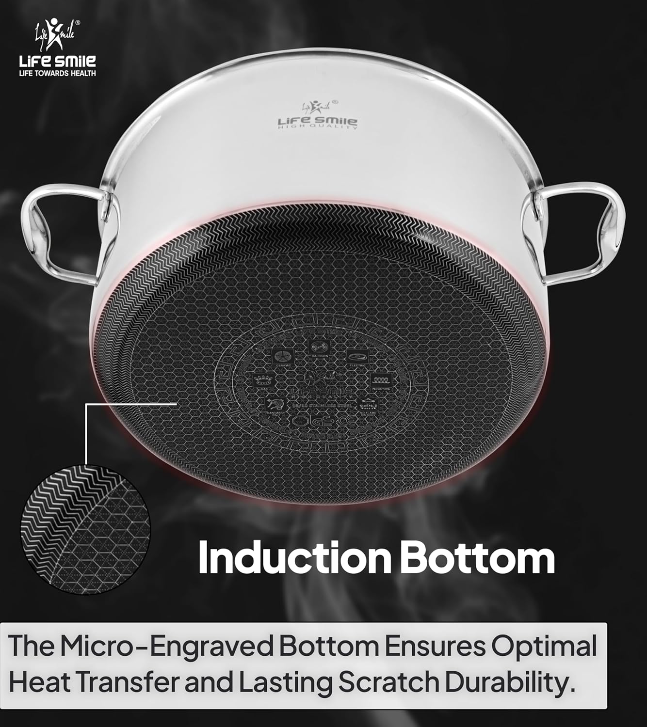 کف القایی،: آن را برای استفاده روی اکثر انواع اجاق گاز مناسب میکند. مناسب برای اجاقهای با منابع پخت چندگانه و اجاقهای صفحهای: اجاقهای صفحهای/ گازی/ سرامیکی/ القایی، همچنین برای فر ایمن است. یکی دیگر از مزایای استیل ضد زنگ: به سرعت و به طور یکنواخت گرم شدن میباشد